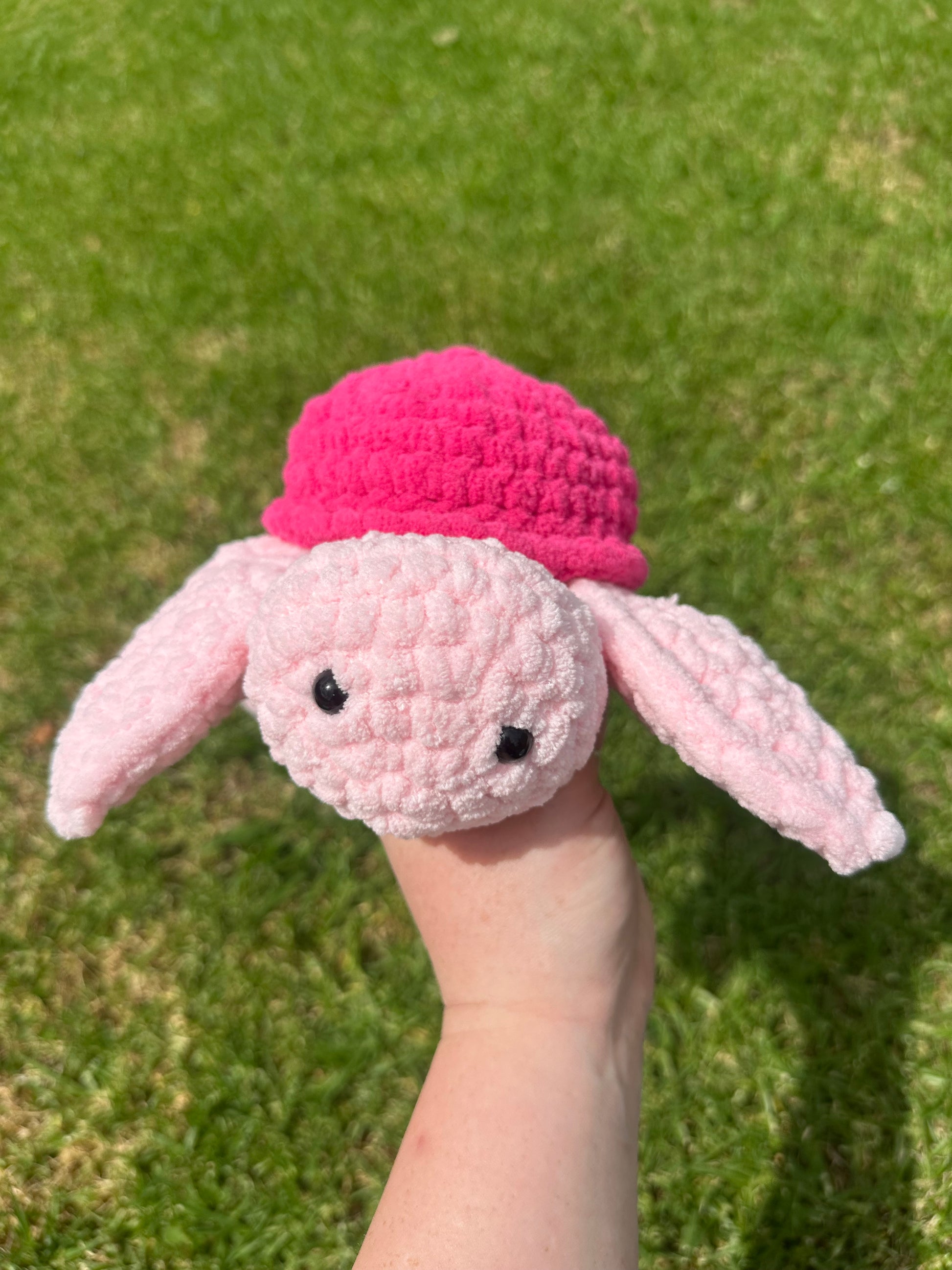 Hand-crocheted with super soft yarn, this sweet little turtle features a fluffy light pink body, glossy safety eyes, and the cutest bright pink shell. Perfect for gifting, collecting, or adding a cozy handmade touch to any space.
